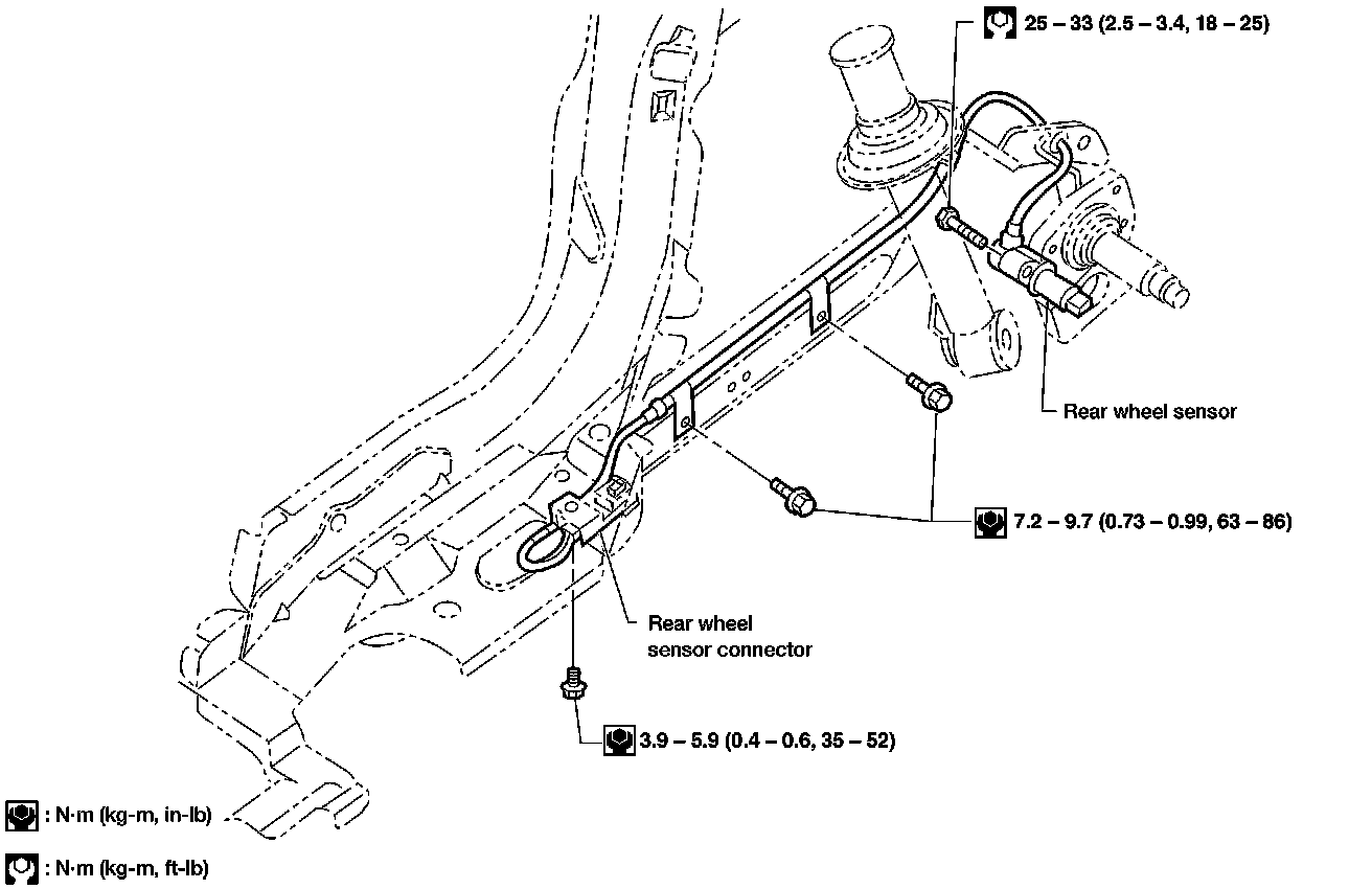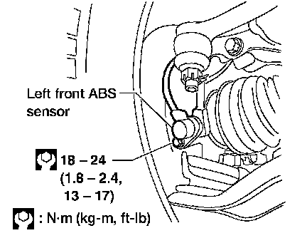 Removal and InstallationCAUTION: Be careful not to damage sensor edge and sensor rotor teeth. When removing the front or rear wheel hub assembly, disconnect the ABS wheel sensor from the assembly and move it away.