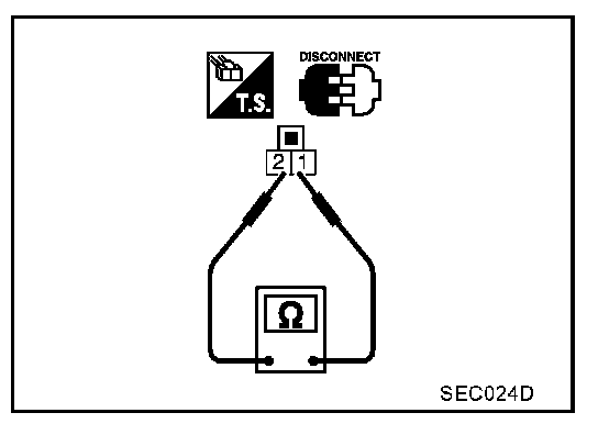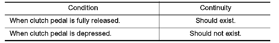 3. Check continuity between ASCD clutch switch terminals 1 and 2 under the given conditions.