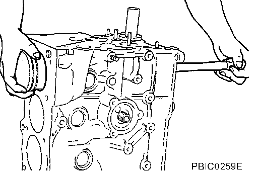 NOTE: When replacing the rear oil seal without removing the cylinder block, use a screwdriver to pull it out from between crankshaft and block.