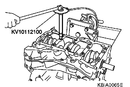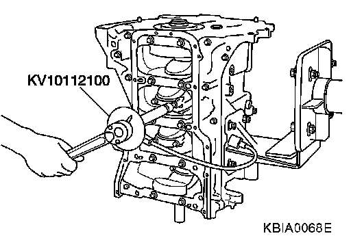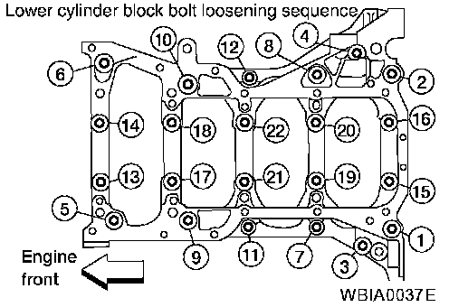 ^ Before loosening the lower cylinder block mounting bolts, measure the crankshaft side clearance. Refer to Engine; Specifications; Mechanical.