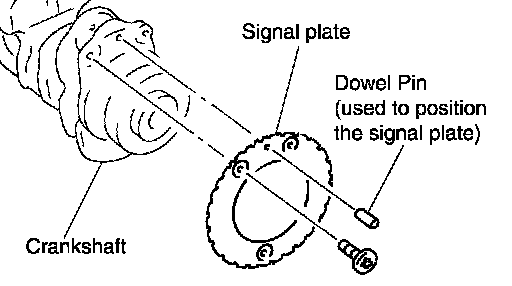a. Position the crankshaft and signal plate using a positioning dowel pin, and tighten the mounting bolts to specification.