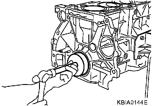 ^ Press the oil seal between cylinder block and crankshaft with a suitable drift.