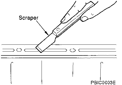 1. Using a scraper, remove the old RTV Silicone Sealant adhering to the gasket application surface and the mating surface.