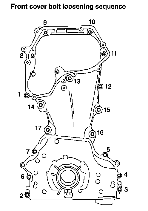 Front cover bolts: 12 - 13 Nm (1.2 - 1.4 kg-m, 9 - 10 ft. lbs.)