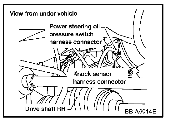 The knock sensor is attached to the cylinder block. It senses engine knocking using a piezoelectric element. A knocking vibration from the cylinder block is sensed as vibrational pressure. This pressure is converted into a voltage signal and sent to the ECM.