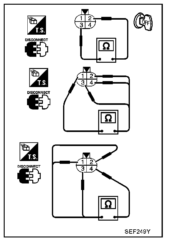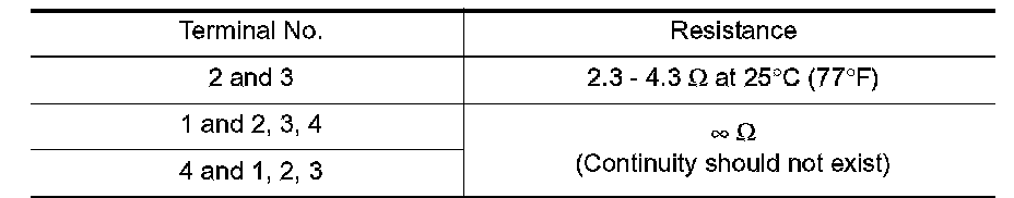 1. Check resistance between HO2S1 terminals as shown.