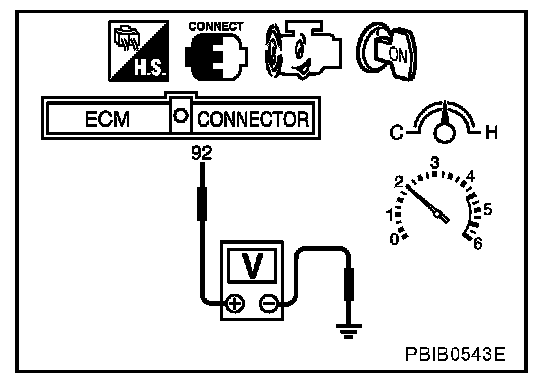 2. Set voltmeter probes between ECM terminal 92 [HO2S1 (B1) signal] and engine ground.