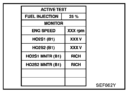 3. Select "FUEL INJECTION" in "ACTIVE TEST" mode, and select "HO2S2 (B1)" as the monitor item with CONSULT-II.