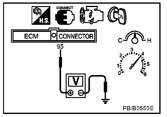 3. Set voltmeter probes between ECM terminal 95 [HO2S2 (B1) signal] and engine ground.