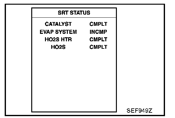 NOTE: SRT can be set as "CMPLT" together with the DTC(s). Therefore, DTC check must always be carried out prior to the state emission inspection even though the SRT indicates "CMPLT".