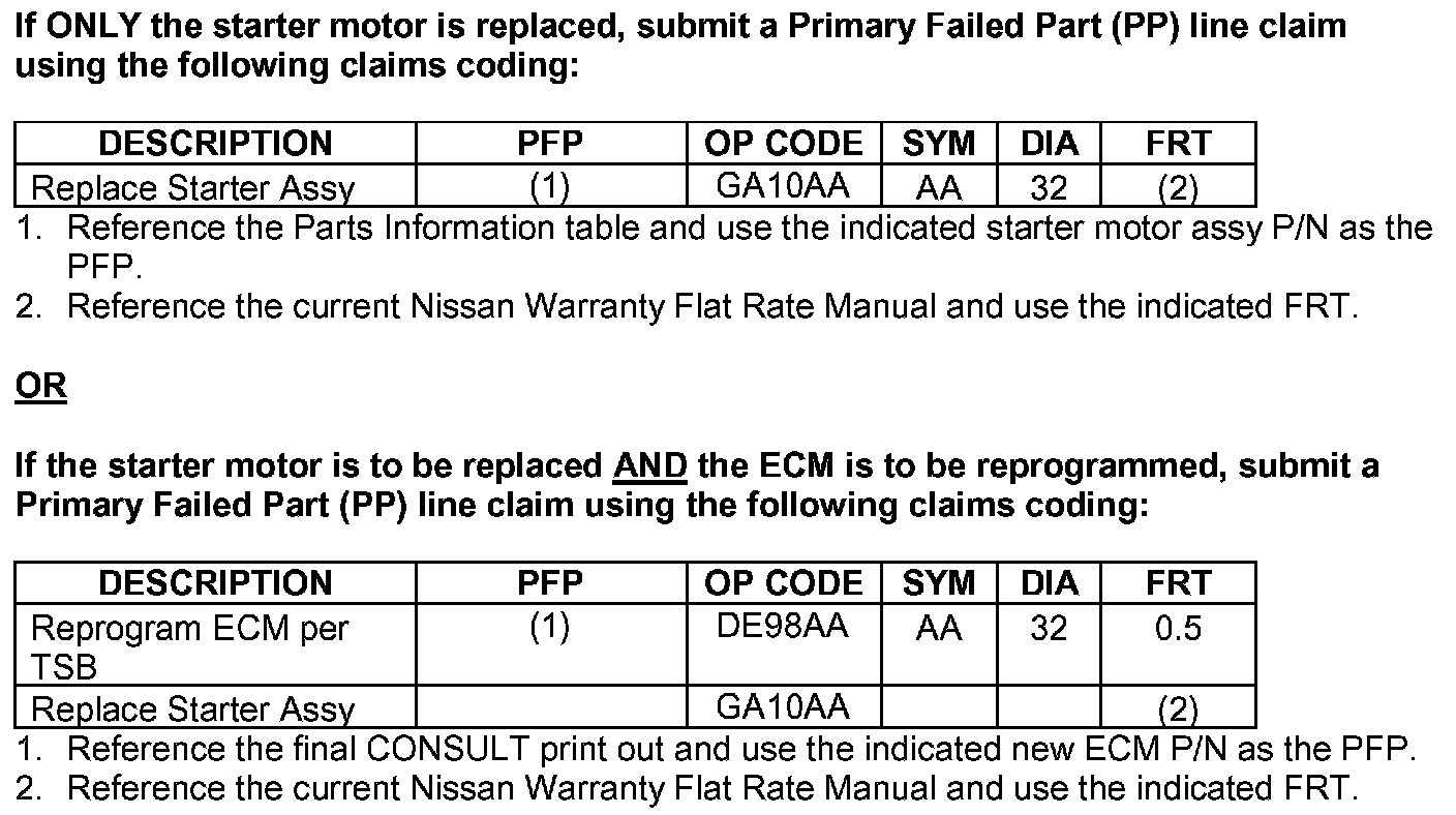 ^ Refer to section SC, "STARTING SYSTEM, Removal and Installation" in the applicable Nissan Electronic Service Manual (ESM).