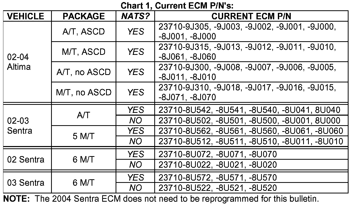 Altima; vehicles built up to 12-17-2003 Sentra; ALL