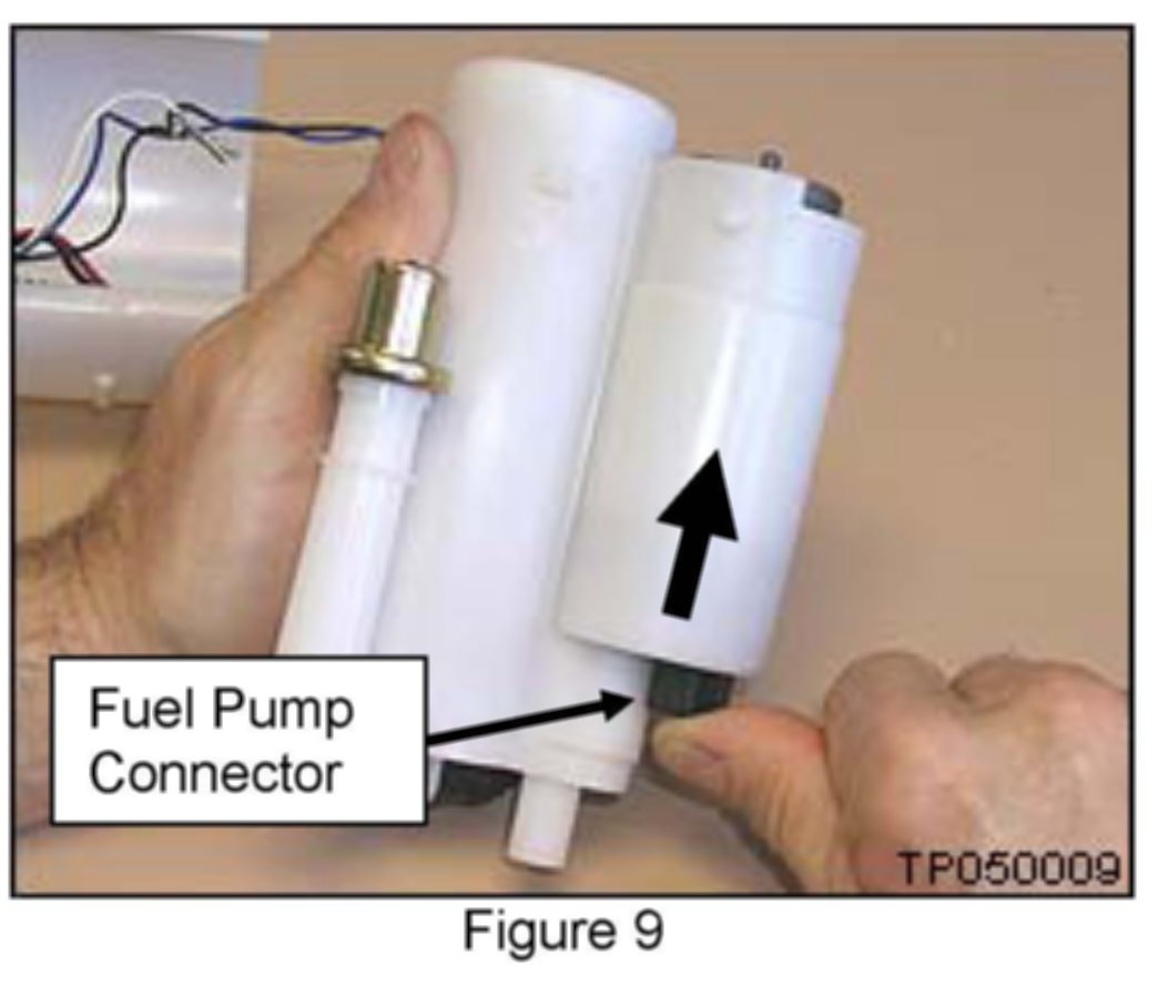 a. Carefully push on the fuel pump connector as shown in Figure 9.
