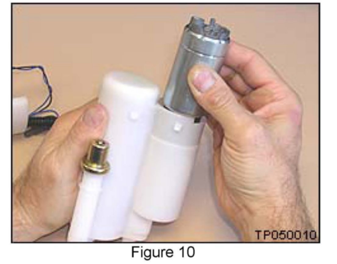 10. Remove the support rubber from the bottom of the fuel pump and discard it.