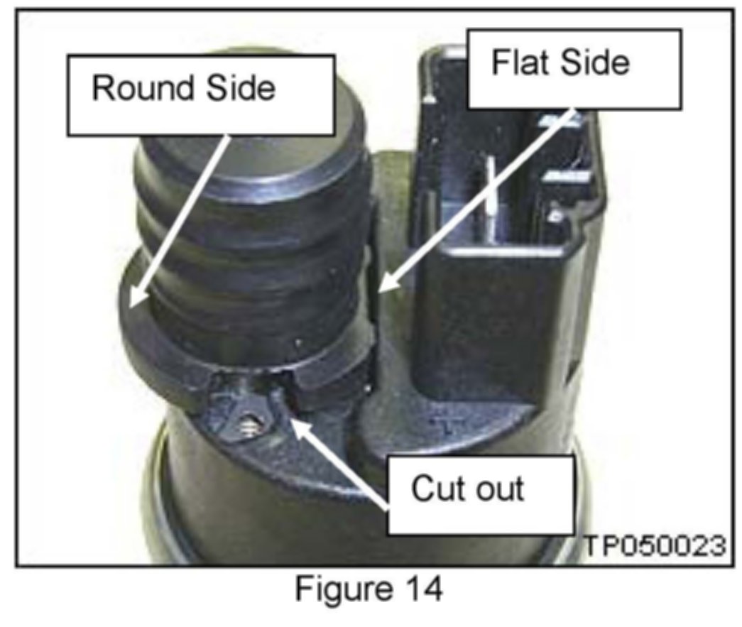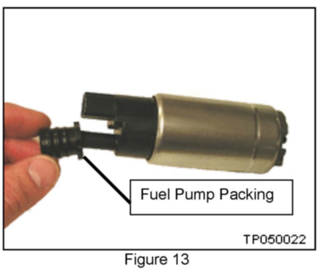 16. Place the new fuel pump packing (from the kit) on the fuel pump outlet as shown in Figures 13 and 14.