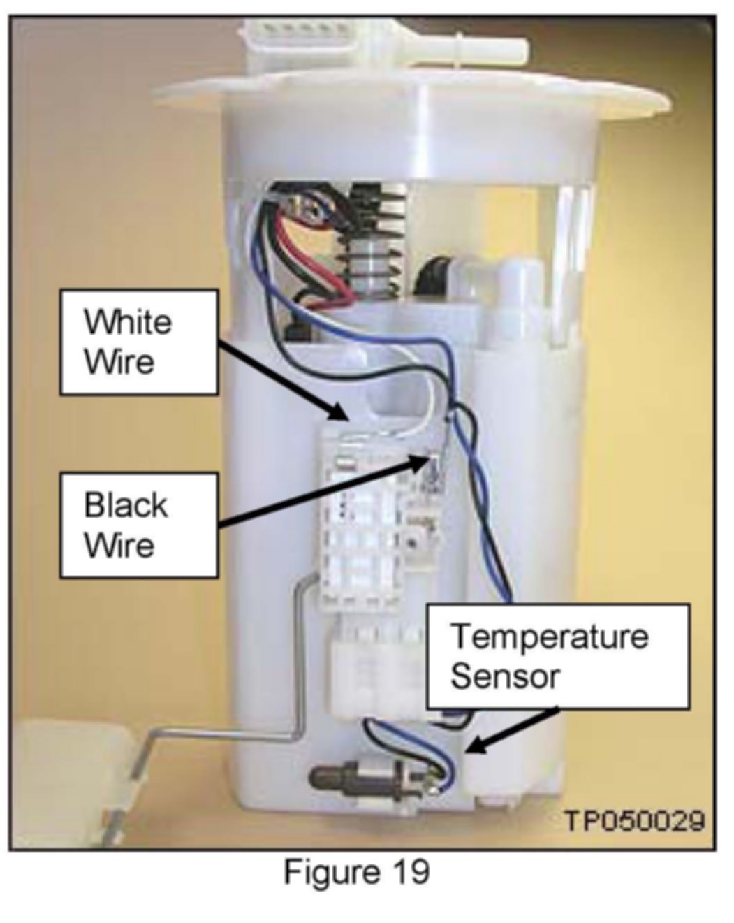 23. Connect the wires to the fuel level sensor as shown in Figure 19.
