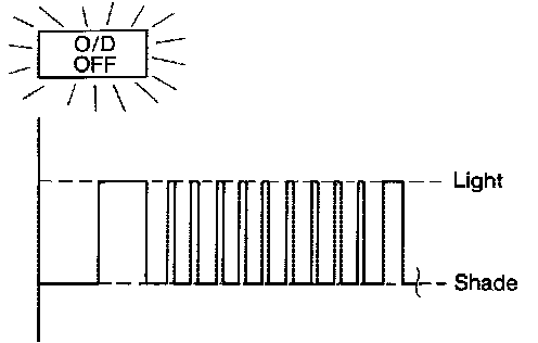 Selector lever in "D" and vehicle speed higher than 40 km/h (25 MPH), engine speed higher than 1,500 rpm, throttle opening greater than 1/8 of the full throttle position and driving for more than 5 seconds.
