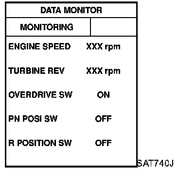 2. Select "DATA MONITOR" mode for "A/T" with CONSULT-II.