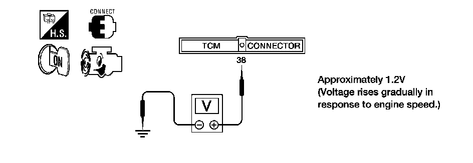 2. Check voltage between TCM terminal 38 and ground (measure in AC range).
