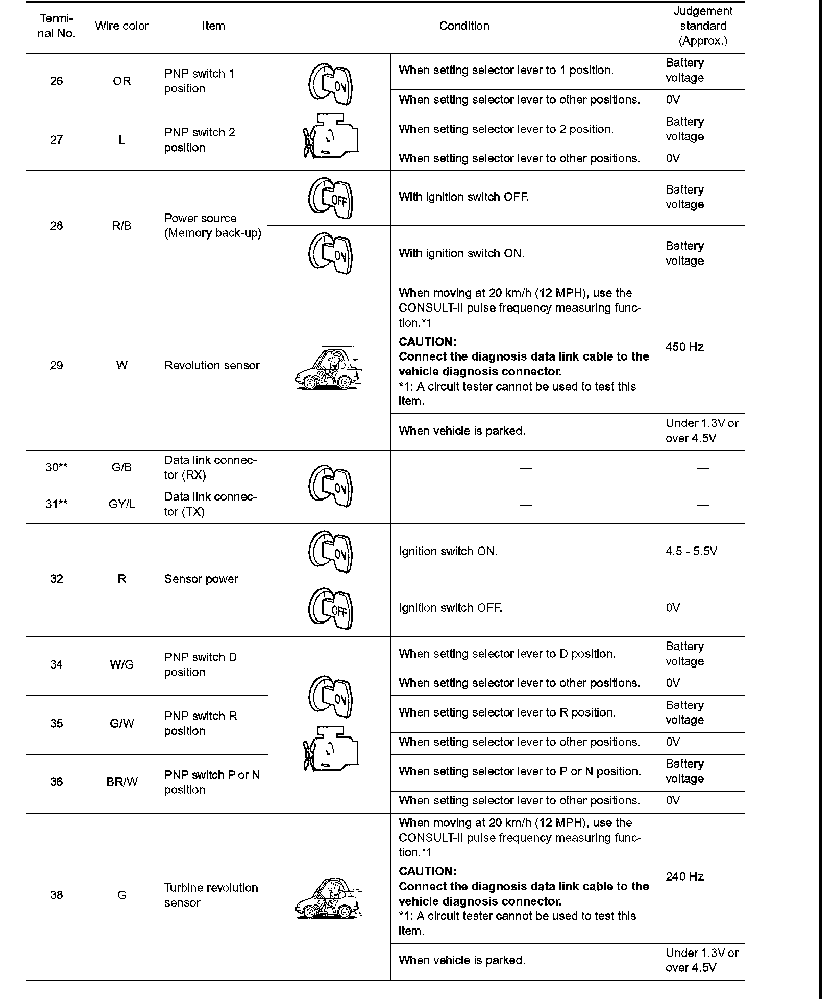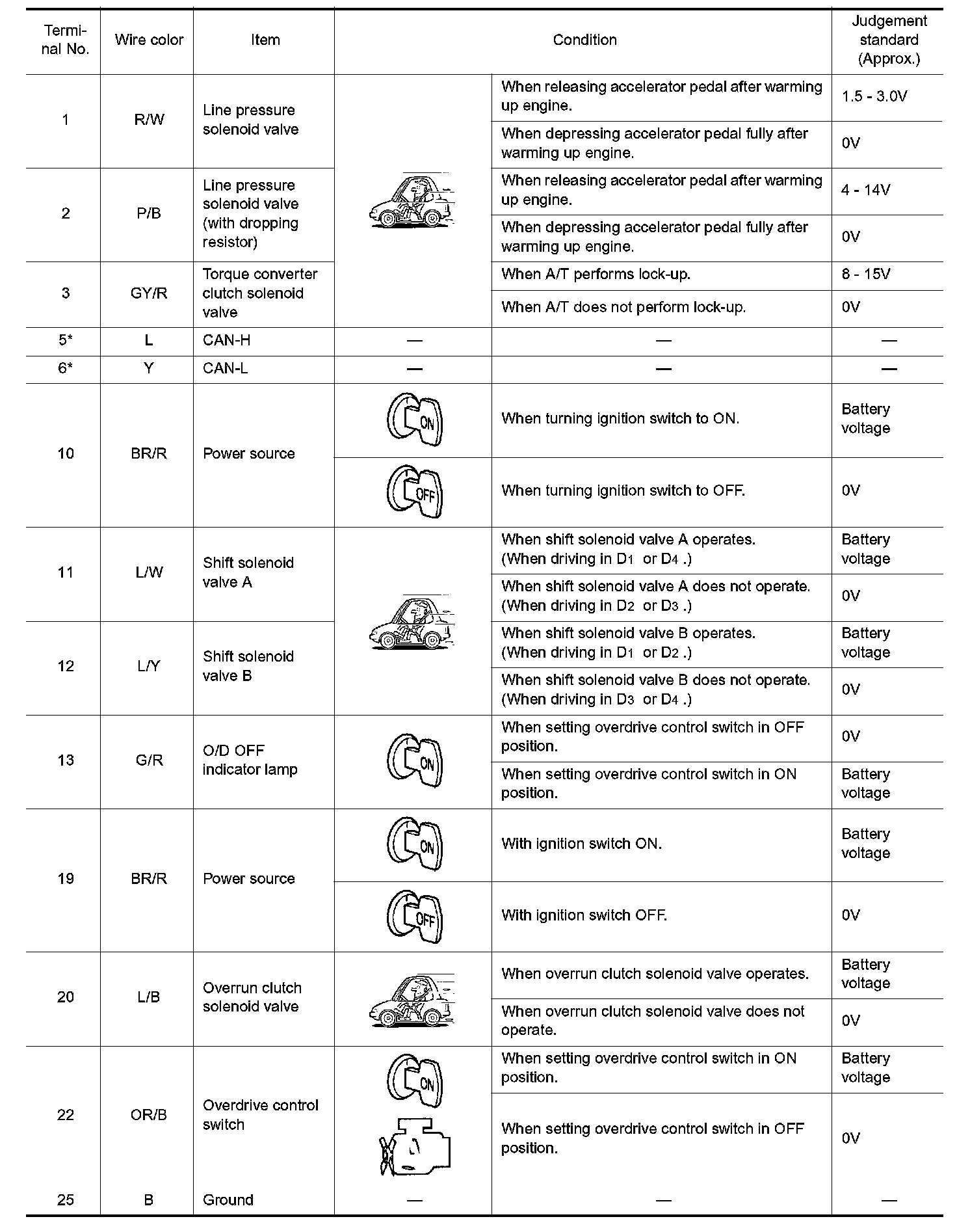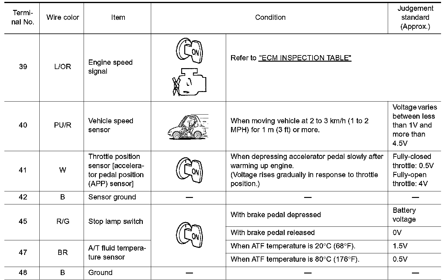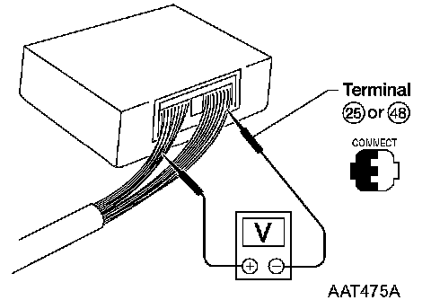 Measure voltage between each terminal and terminal 25 or 48 by following "