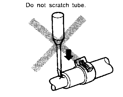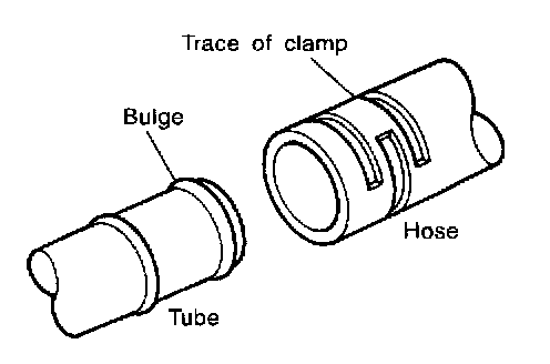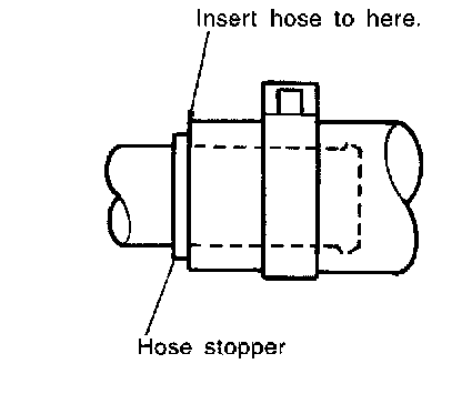 To reinstall the rubber hose securely make sure of hose insertion length and clamp orientation. (If tube is equipped with hose stopper insert rubber hose into tube until it butts up against hose stopper.)