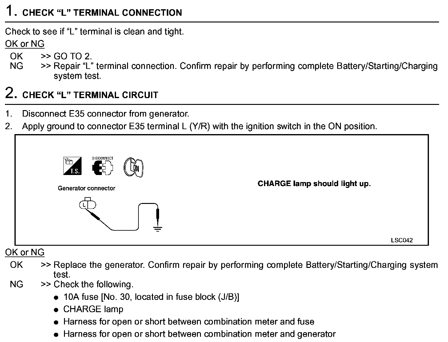 Diagnostic Procedure 1 Check "L" Terminal Circuit Step 1 - 2: