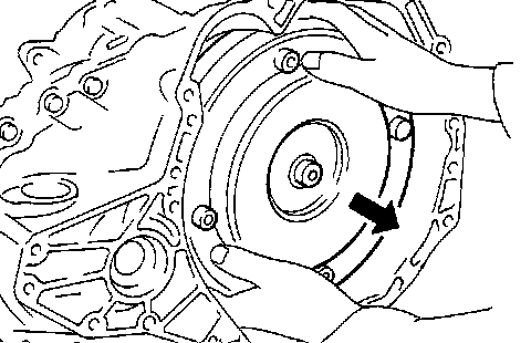 c. Check that inner race rotates clockwise only. If not, replace torque converter assembly.