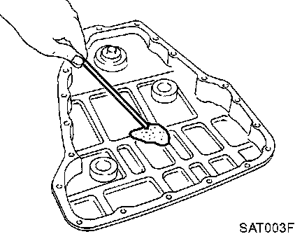 8. Check foreign materials in oil pan to help determine causes of malfunction. If the fluid is very dark, smells burned, or contains foreign particles, the frictional material (clutches, band) may need replacement. A tacky film that will not wipe clean indicates varnish build up. Varnish can cause valves, servo, and clutches to stick and can inhibit pump pressure.