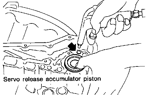 12. Remove servo release accumulator piston with compressed air.