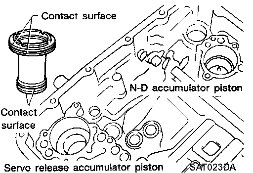 16. Check accumulator pistons and contact surface of transmission case for damage.