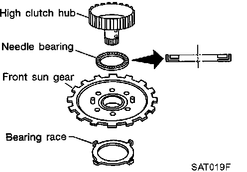 e. Remove front sun gear and needle bearing from high clutch hub and check for damage or wear.