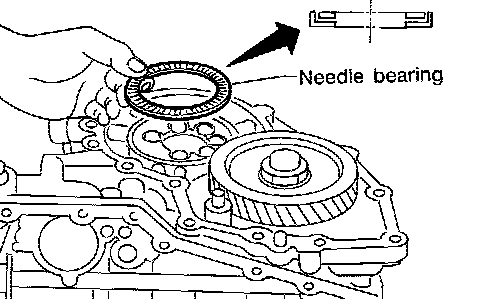 30. Remove needle bearing from transmission case and check for damage or wear.