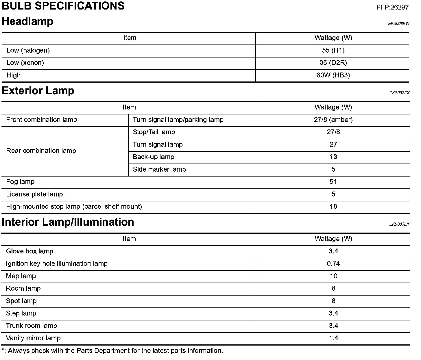 Bulb Specifications: