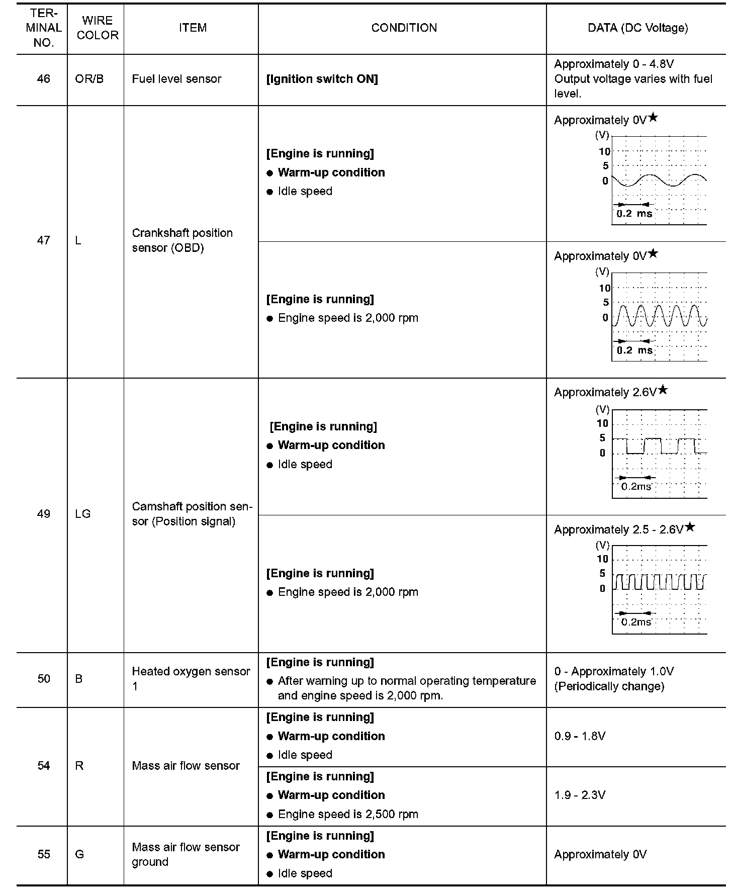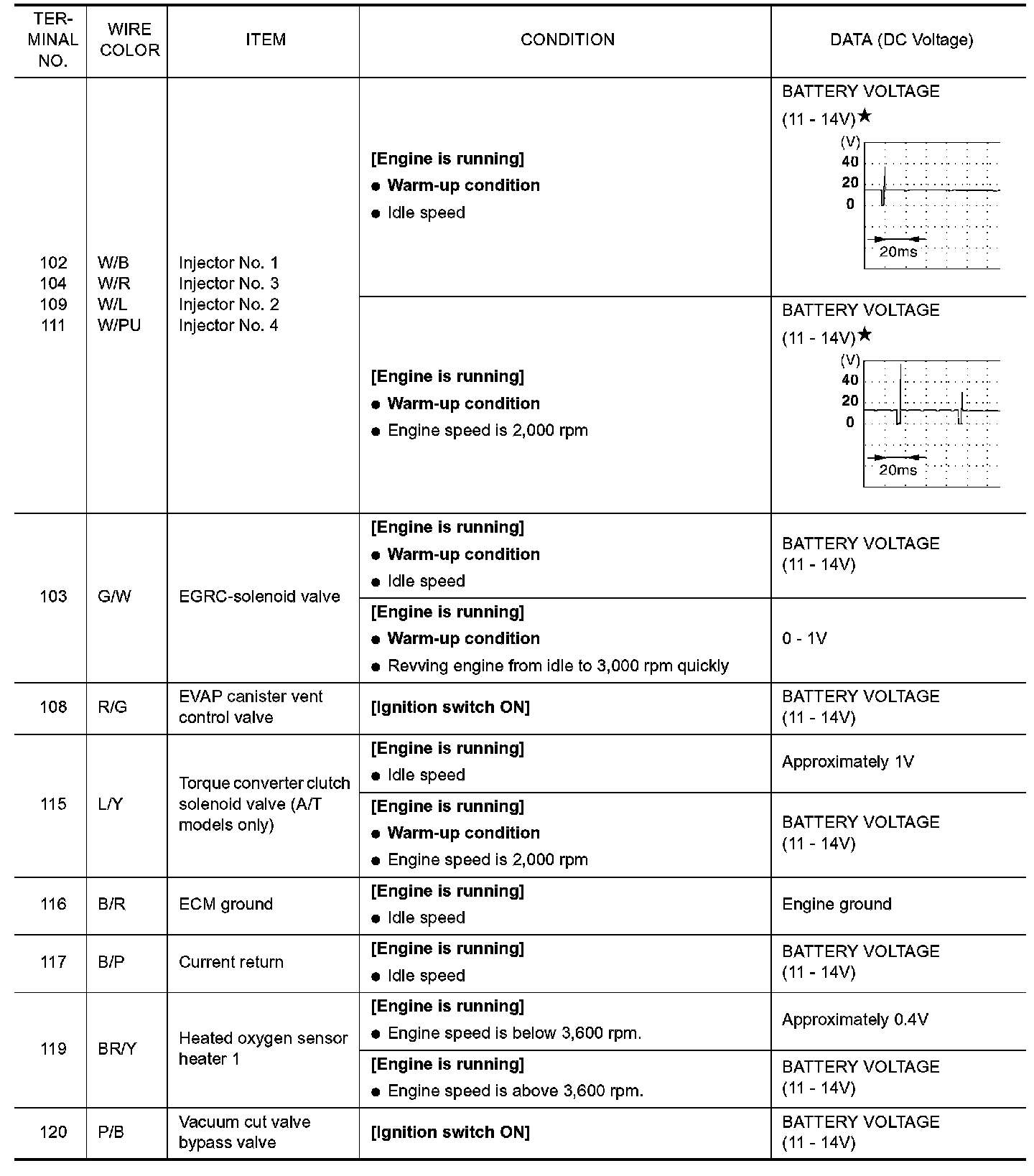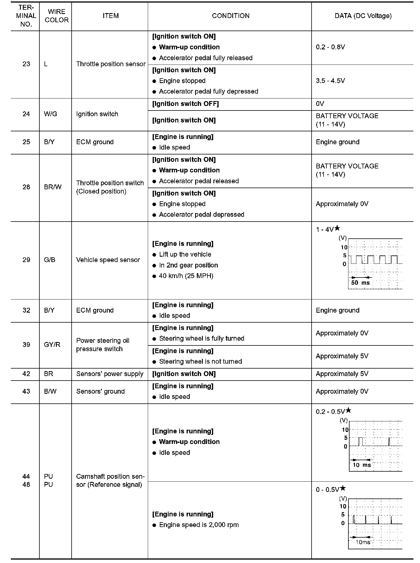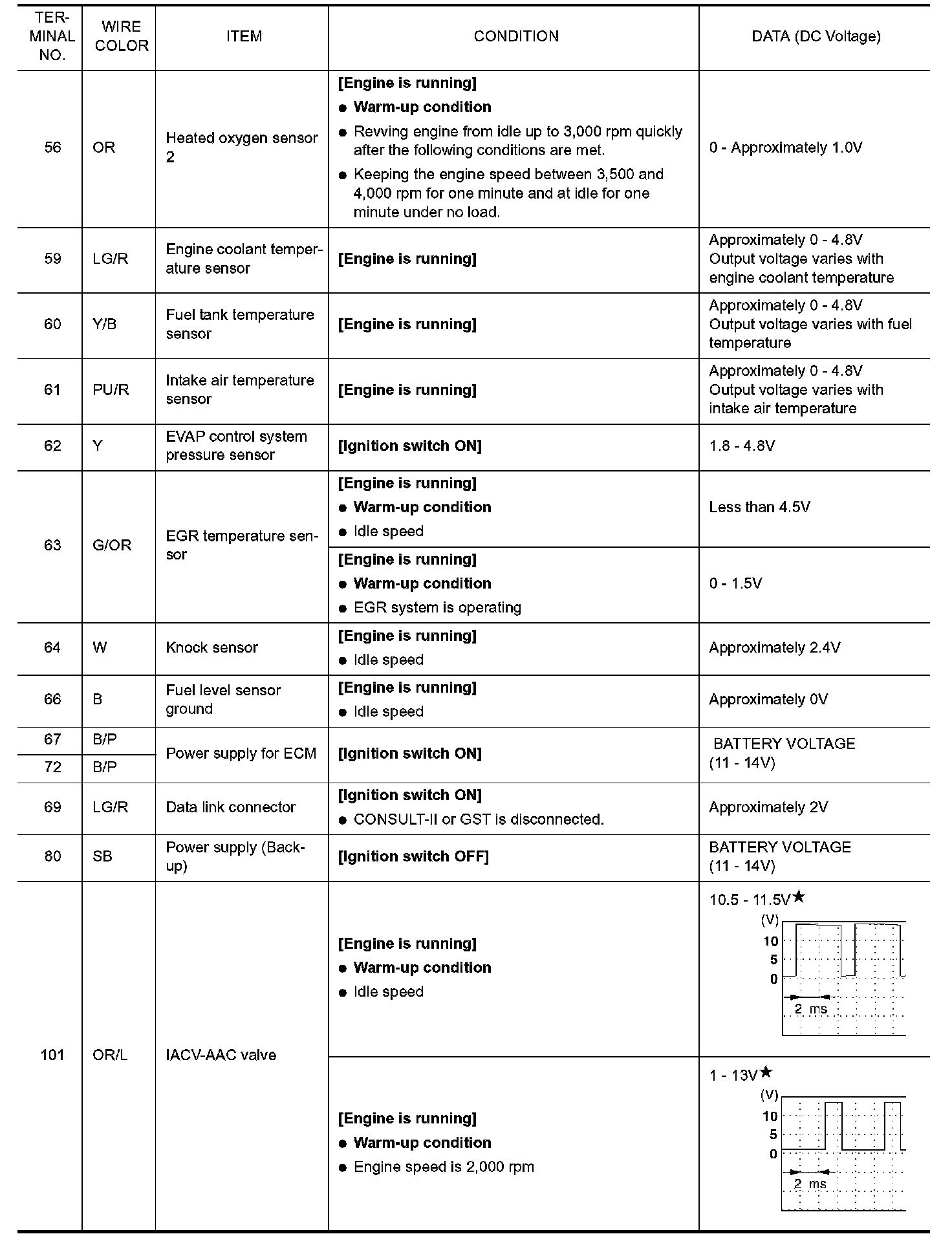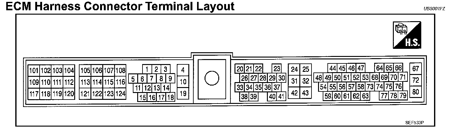 ECM Harness Connector Terminal Layout: