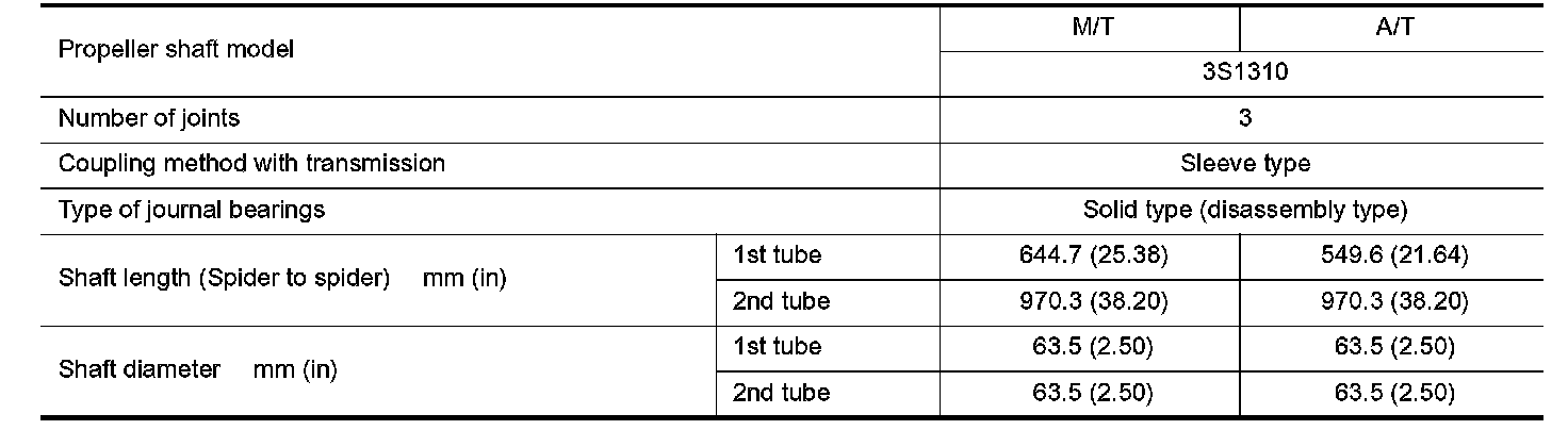 PROPELLER SHAFT - General Specs (2WD 2.4L KA24DE):