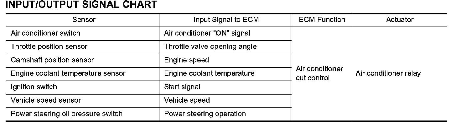 This system improves engine operation when the air conditioner is used. Under the following conditions, the air conditioner is turned off.