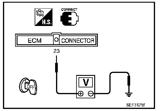 4. Check voltage between ECM terminal 23 (Throttle position sensor signal) and ground under the following conditions.