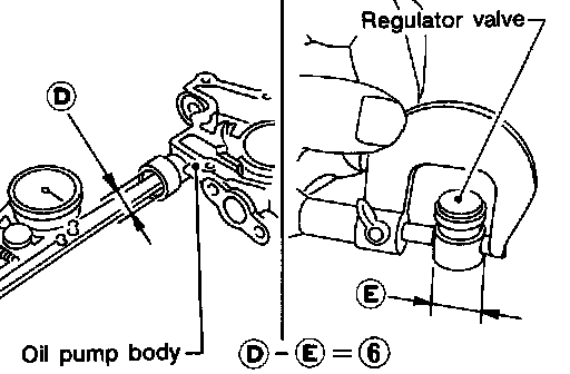 3. Coat regulator valve with engine oil. Check that it falls smoothly into the valve hole by its own weight.