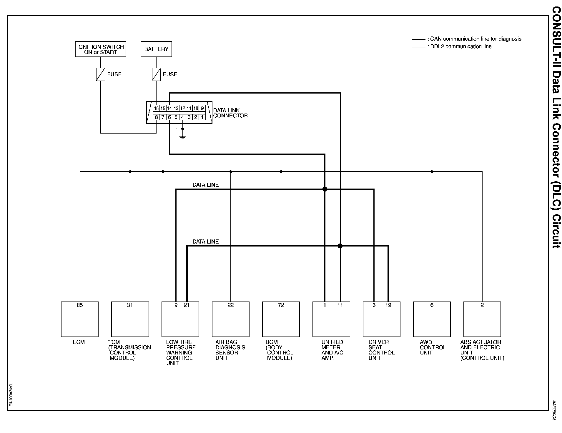 CONSULT-II Data Link Connector (DLC) Circuit