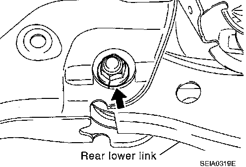 7. If outside the standard value, adjust with adjusting bolt in rear lower link.