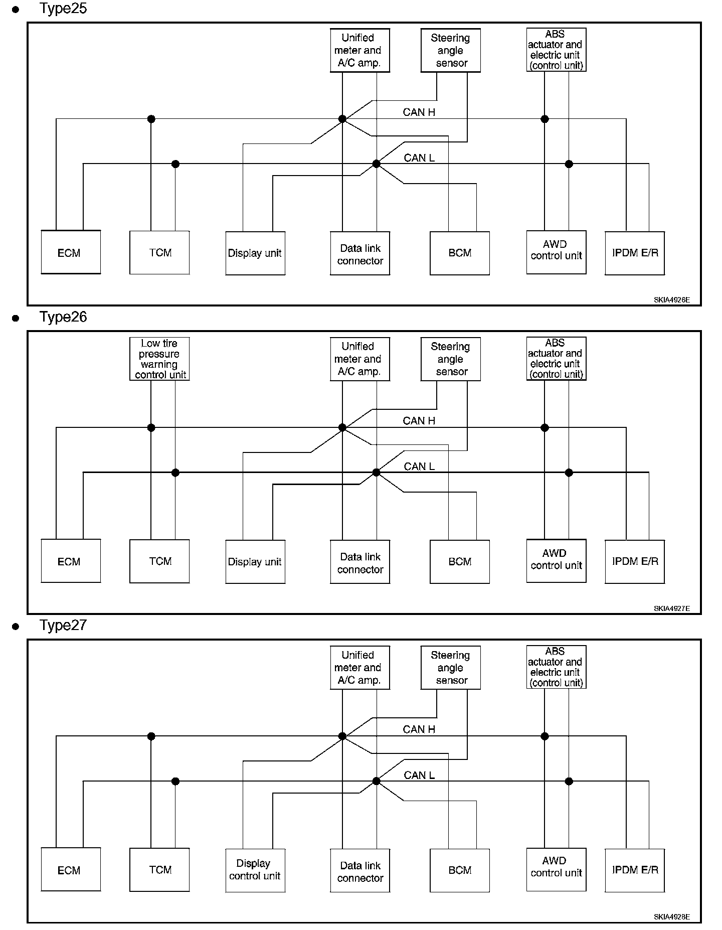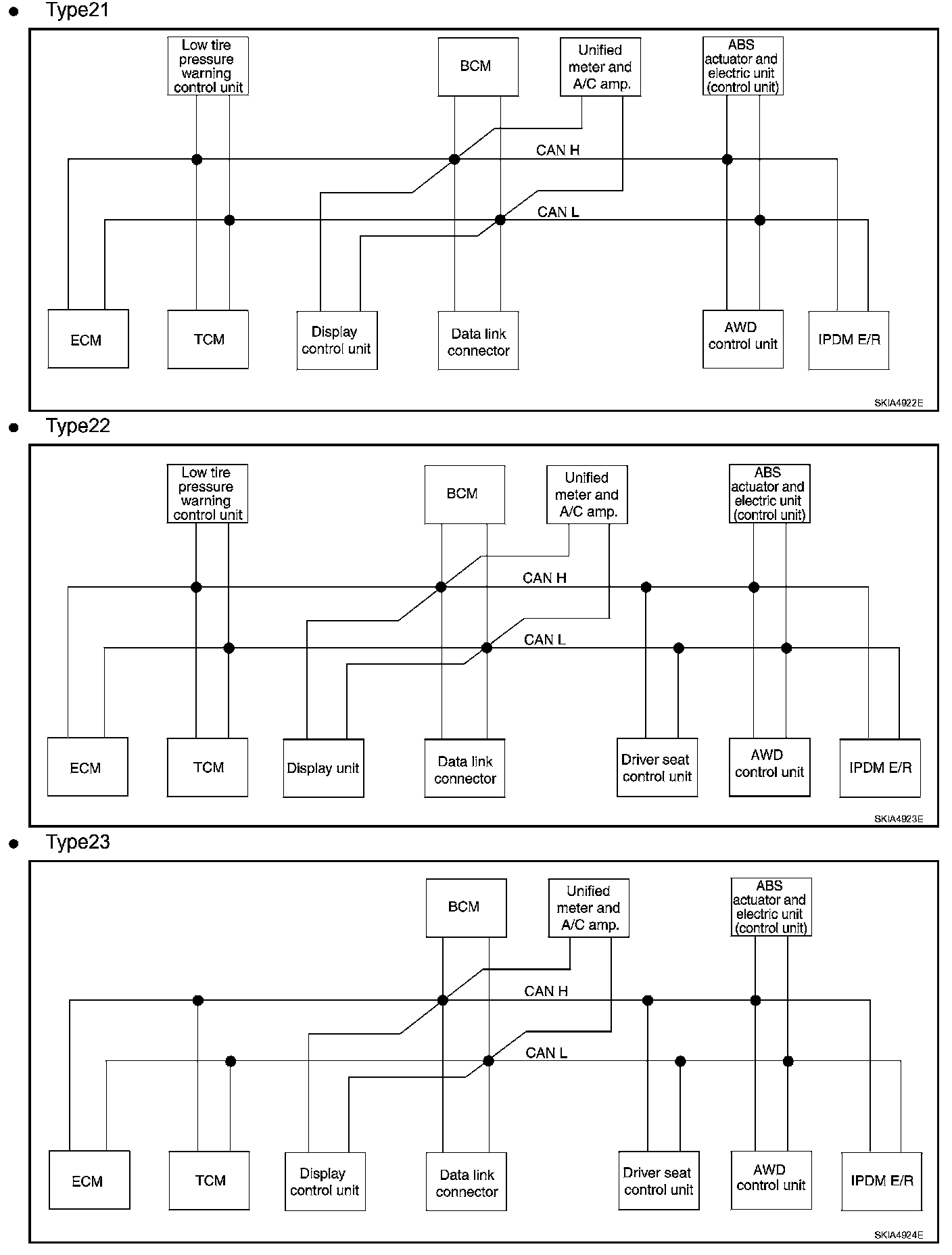CAN Communication System DescriptionCAN (Controller Area Network) is a serial communication line for real time application.It is an on-vehicle multiplex communication line with high data communication speed and excellent error detection ability.Modern vehicles are equipped with many electronic control units and each control unit shares information and links with other control units during operation (not independent).In CAN communication, control units are connected with 2 communication lines (CAN H line, CAN L line) allowing a high rate of information transmission with less wiring.Each control unit transmits/receives data but selectively reads required data only.