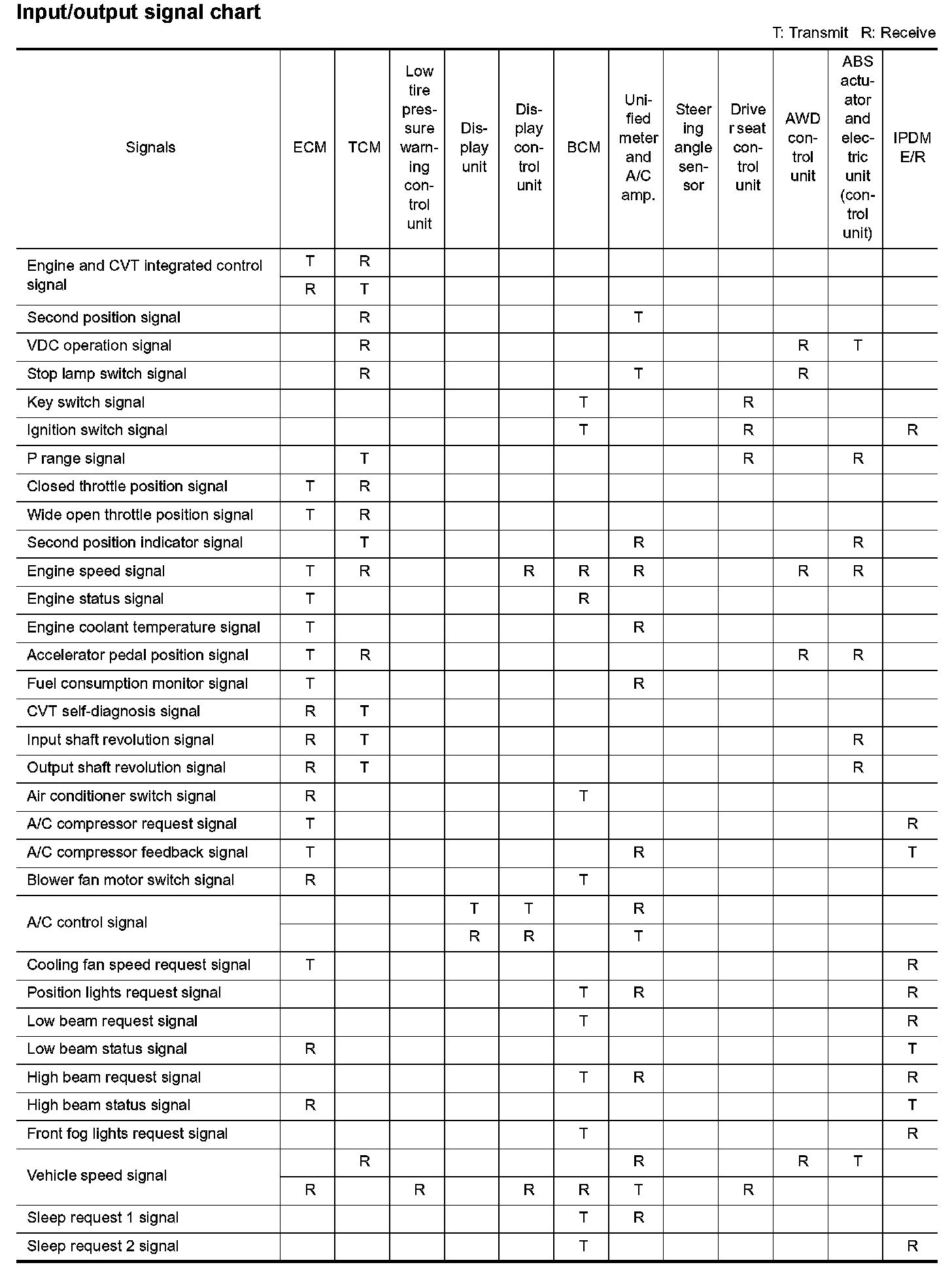 Input/Output Signal Chart Part 1: