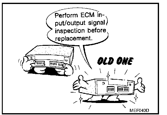 - Before replacing ECM, perform "ECM Terminals and Reference Value" inspection and make sure ECM functions properly.