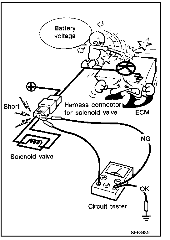 - Do not use ECM ground terminals when measuring input/ output voltage. Doing so may result in damage to the ECM's transistor. Use a ground other than ECM terminals, such as the ground.