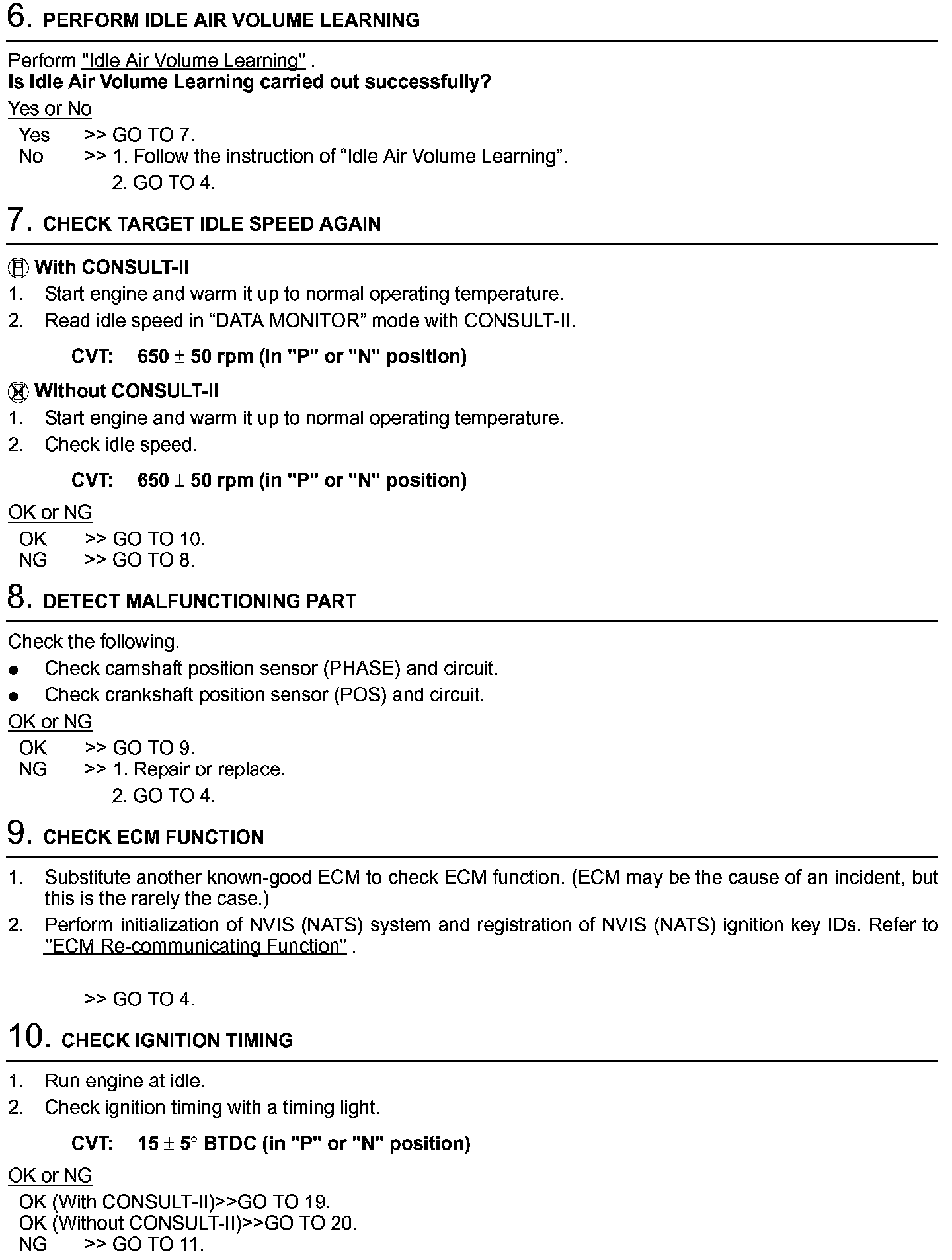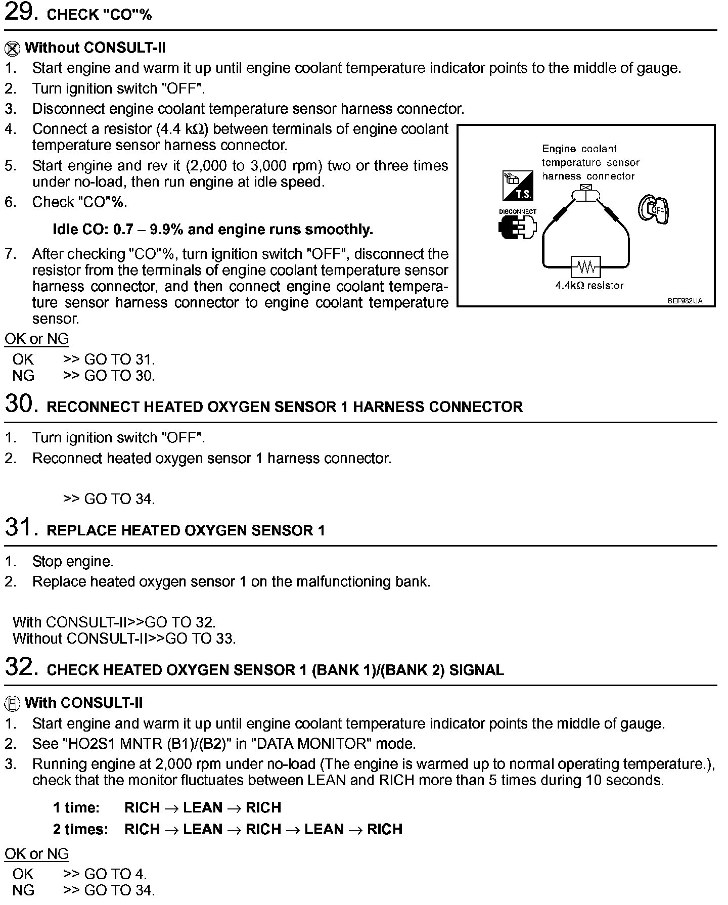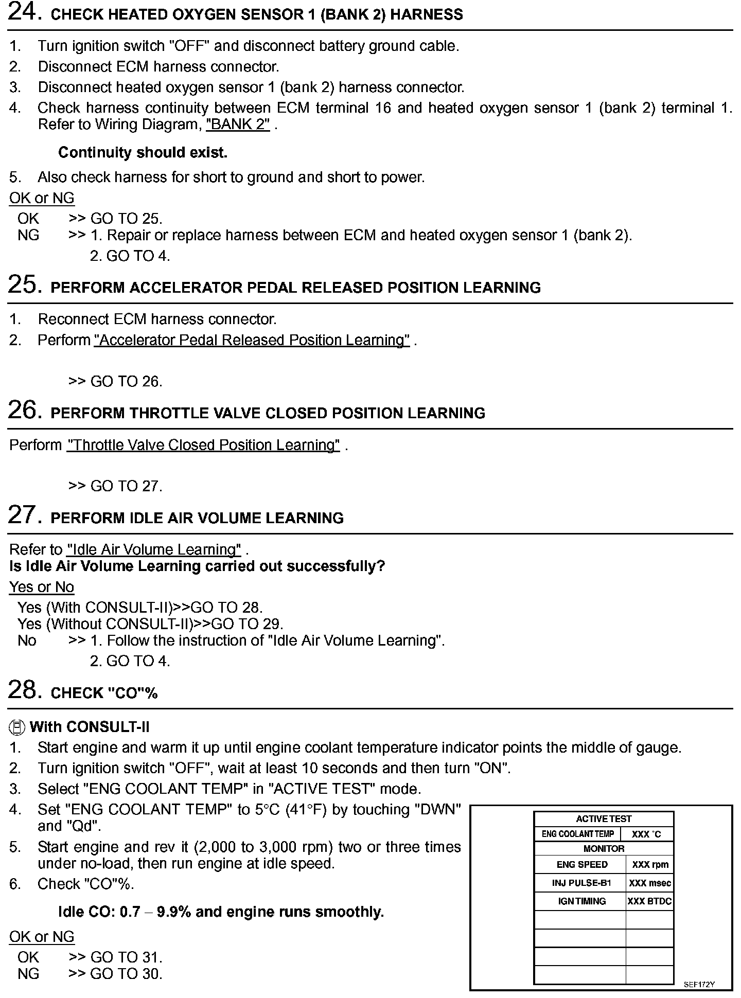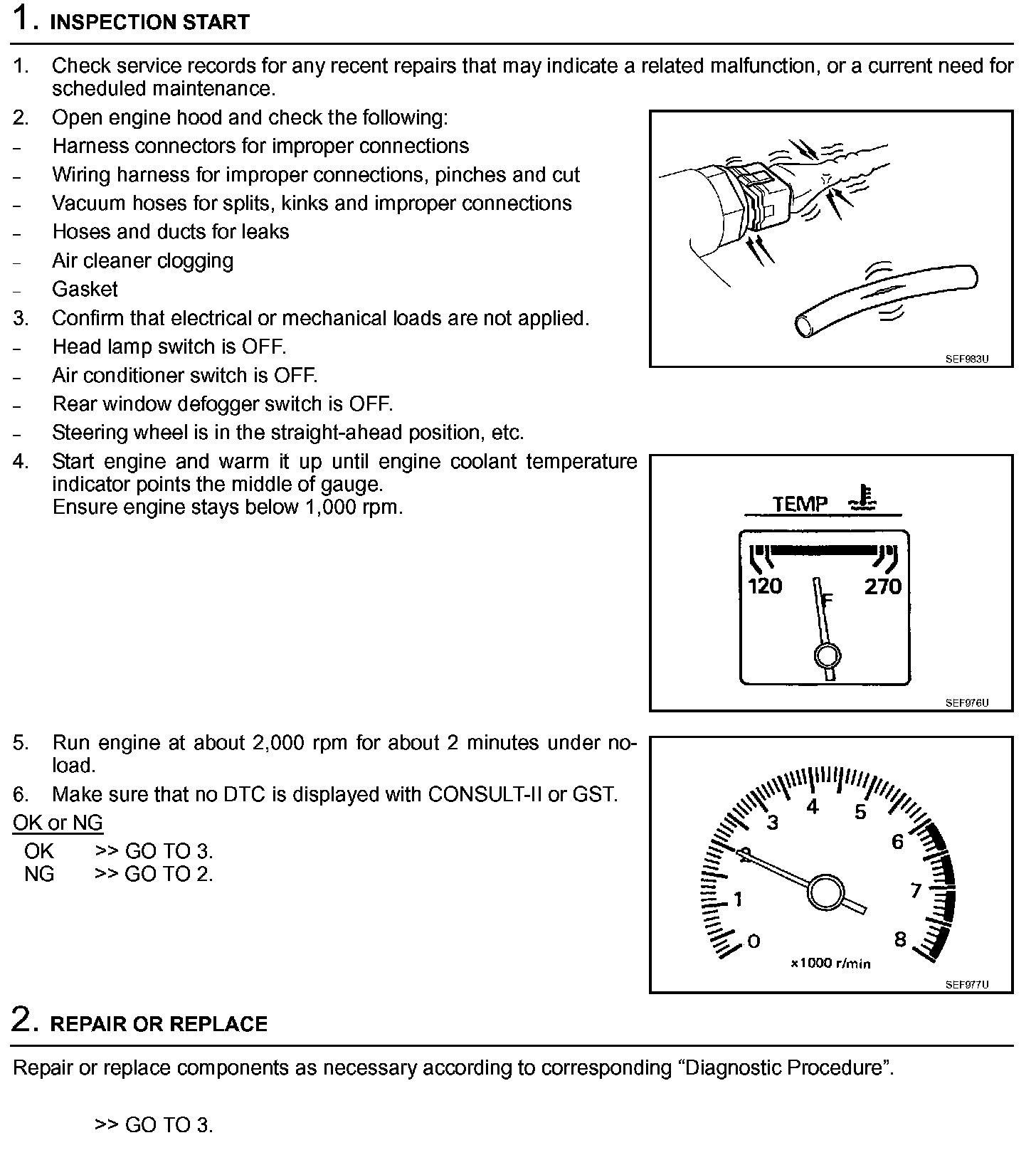 2. On air conditioner equipped models, checks should be carried out while the air conditioner is "OFF".