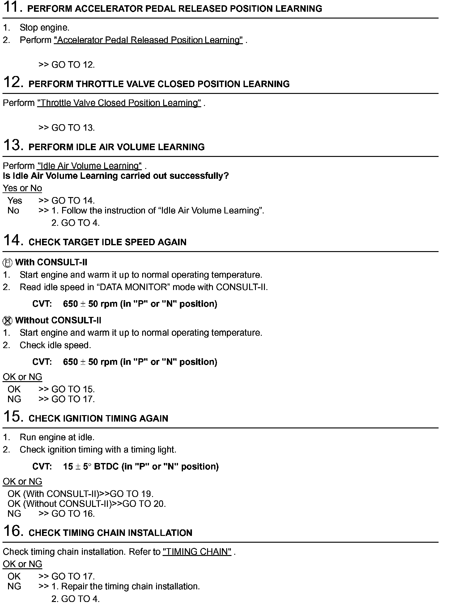 3. Checks should be carried out while shift lever is in "N" position.
