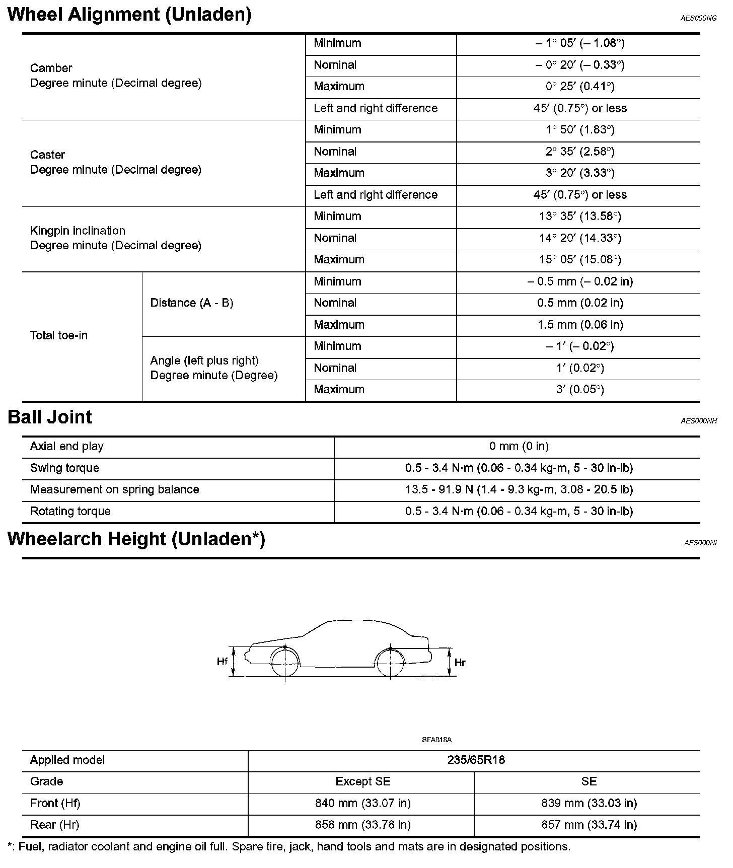 FRONT SUSPENSION - Wheel Alignment (Unladen):