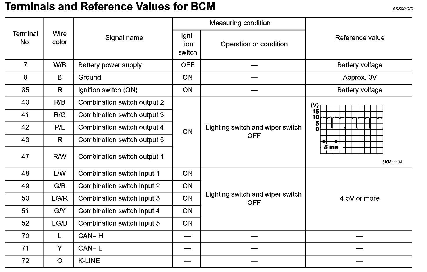 Control Module Pinout Values