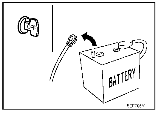 - Before removing parts, turn off ignition switch and then disconnect battery ground cable.
