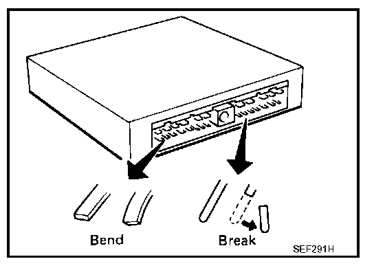 - When connecting or disconnecting pin connectors into or from ECM, take care not to damage pin terminals (bend or break).